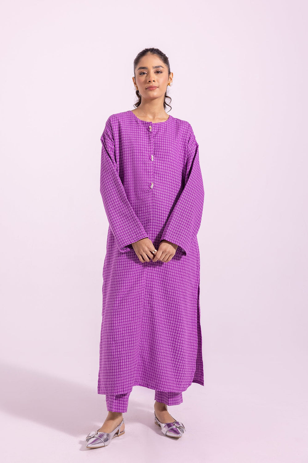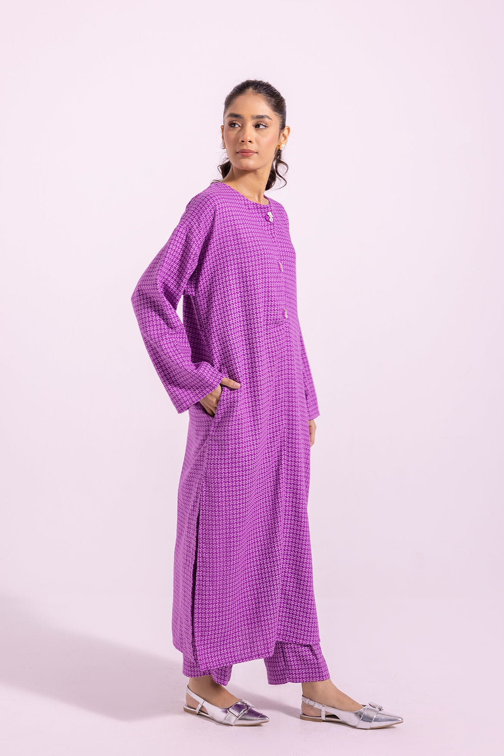 A fascinating composition is layered over this graceful ensemble illustrated in an appealing raspberry rose shade. It features an elegant silhouette shirt adorned with hounds tooth designs and enhanced with buttons at front placket. Paired with a matching trouser, this minimalistic outfit is a perfect option to look sophisticated this season.
