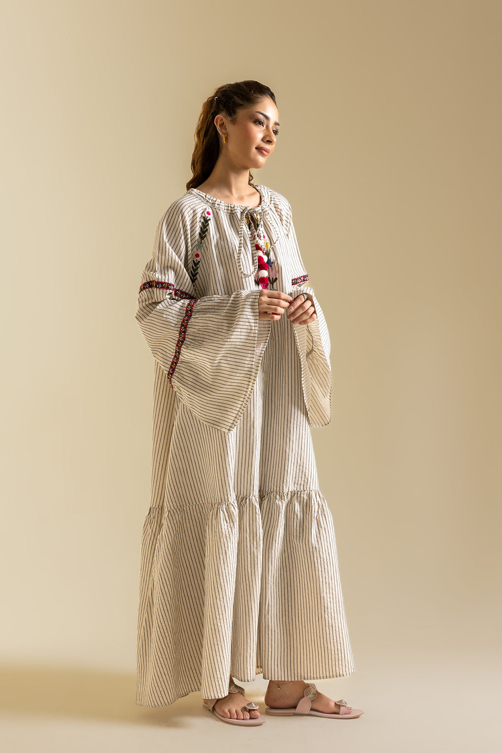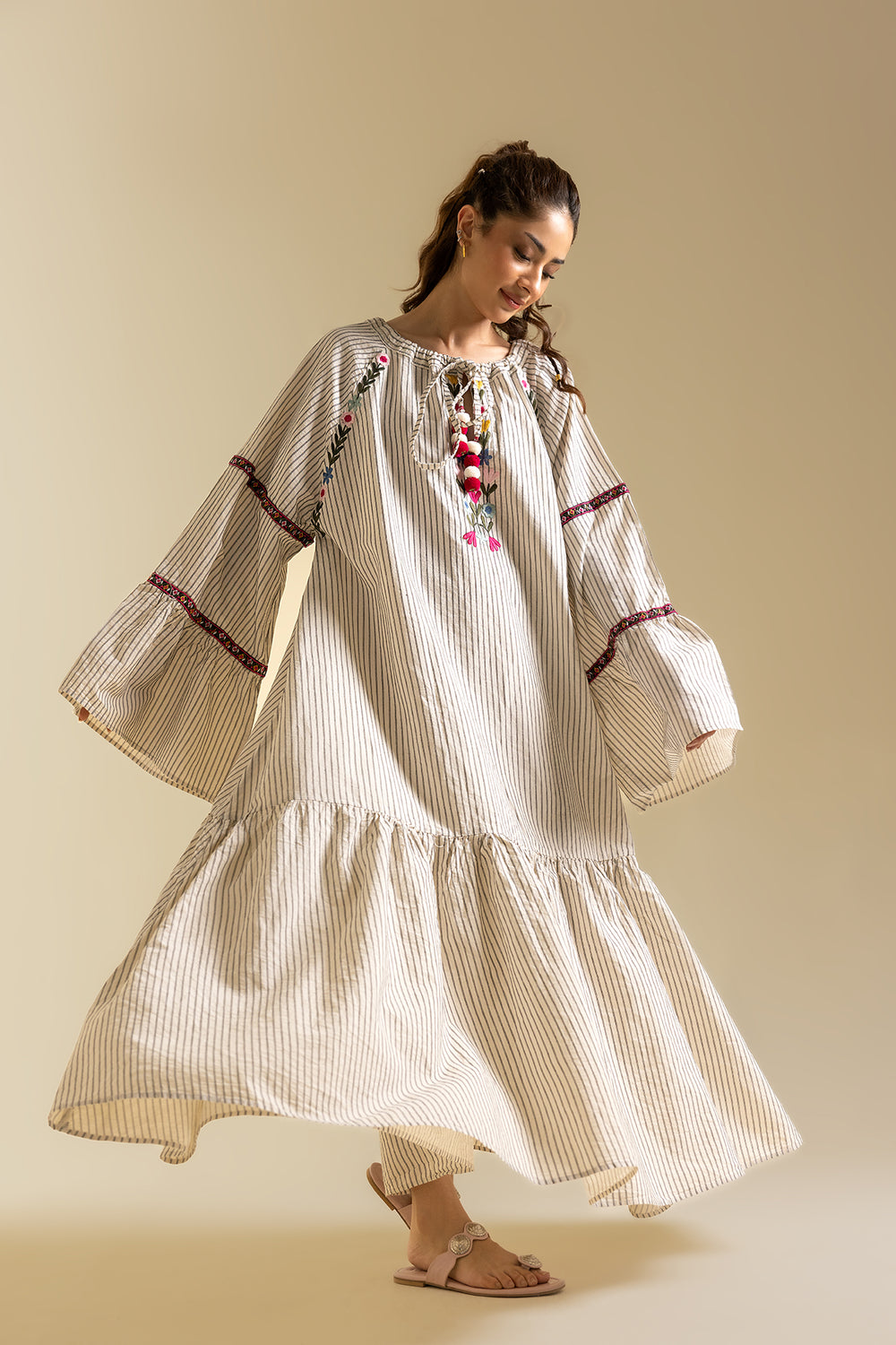 Float into a world of enchanting style with our bohemian dreamscape maxi dress, featuring an exquisite embroidered neckline with playful tassel ties and dramatic flared sleeves adorned with delicate trim. The flowing, tiered silhouette offers unparalleled comfort and movement, while the intricate details evoke a free-spirited charm. Perfect for sun-drenched days or artistic evenings, this dress ensures a captivating presence wherever you wander.