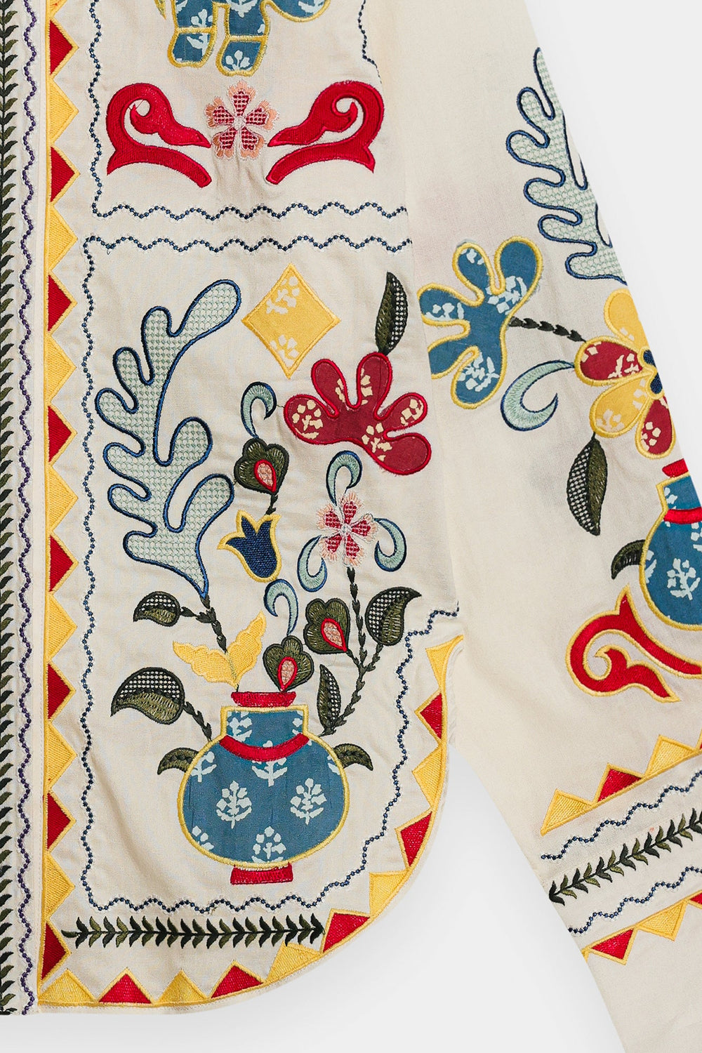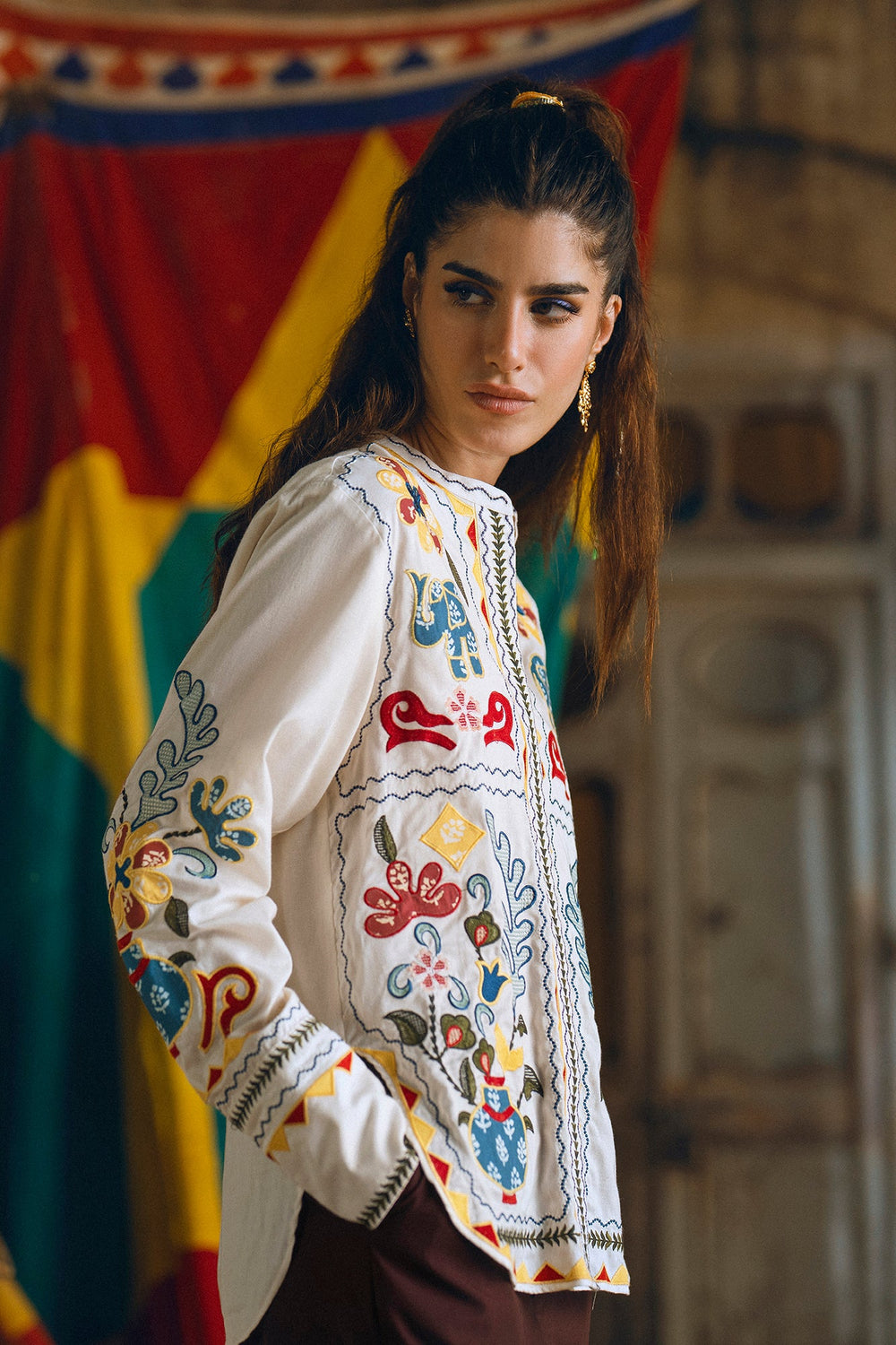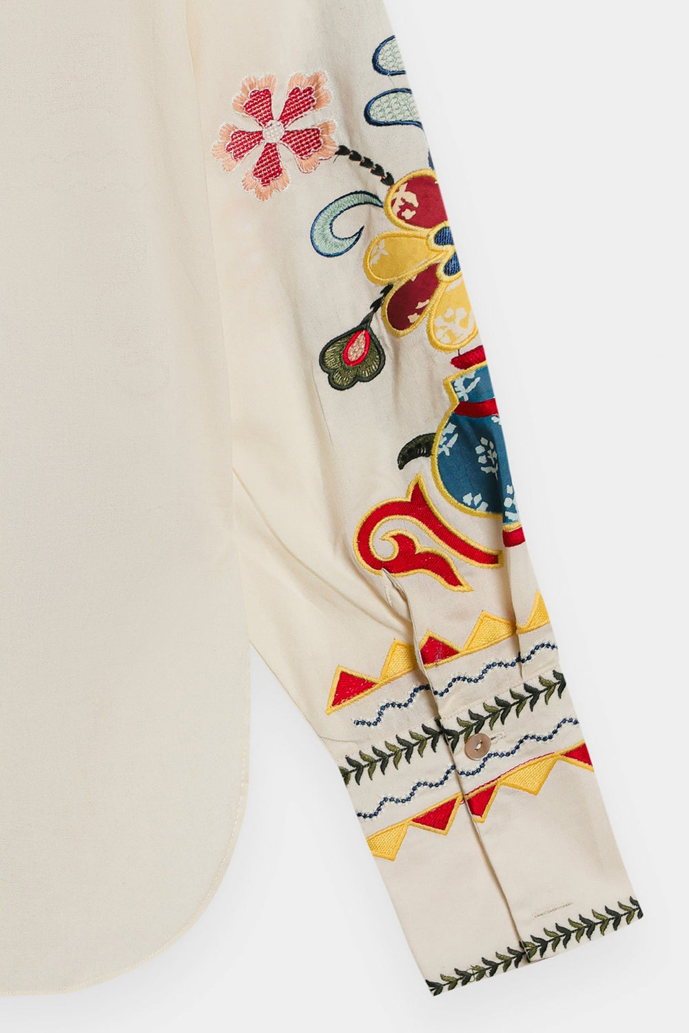 Embrace a blend of art and style with this beautiful embroidered off white kurti. It features intricate and colorful floral motifs, creating a stunning and unique pattern on the front and sleeves. The straight fit ensures tapered silhouette, while the vibrant embroidery makes it a true statement piece. Perfect for a festive celebration or a special occasion where you want to showcase your artistic side.