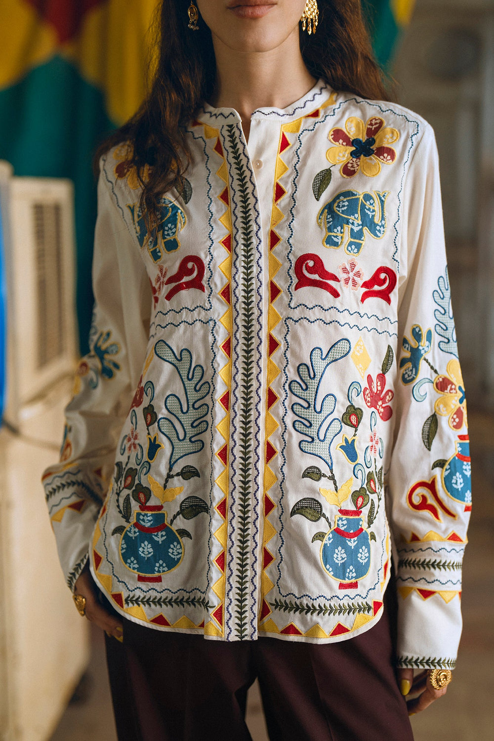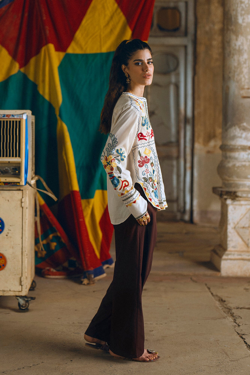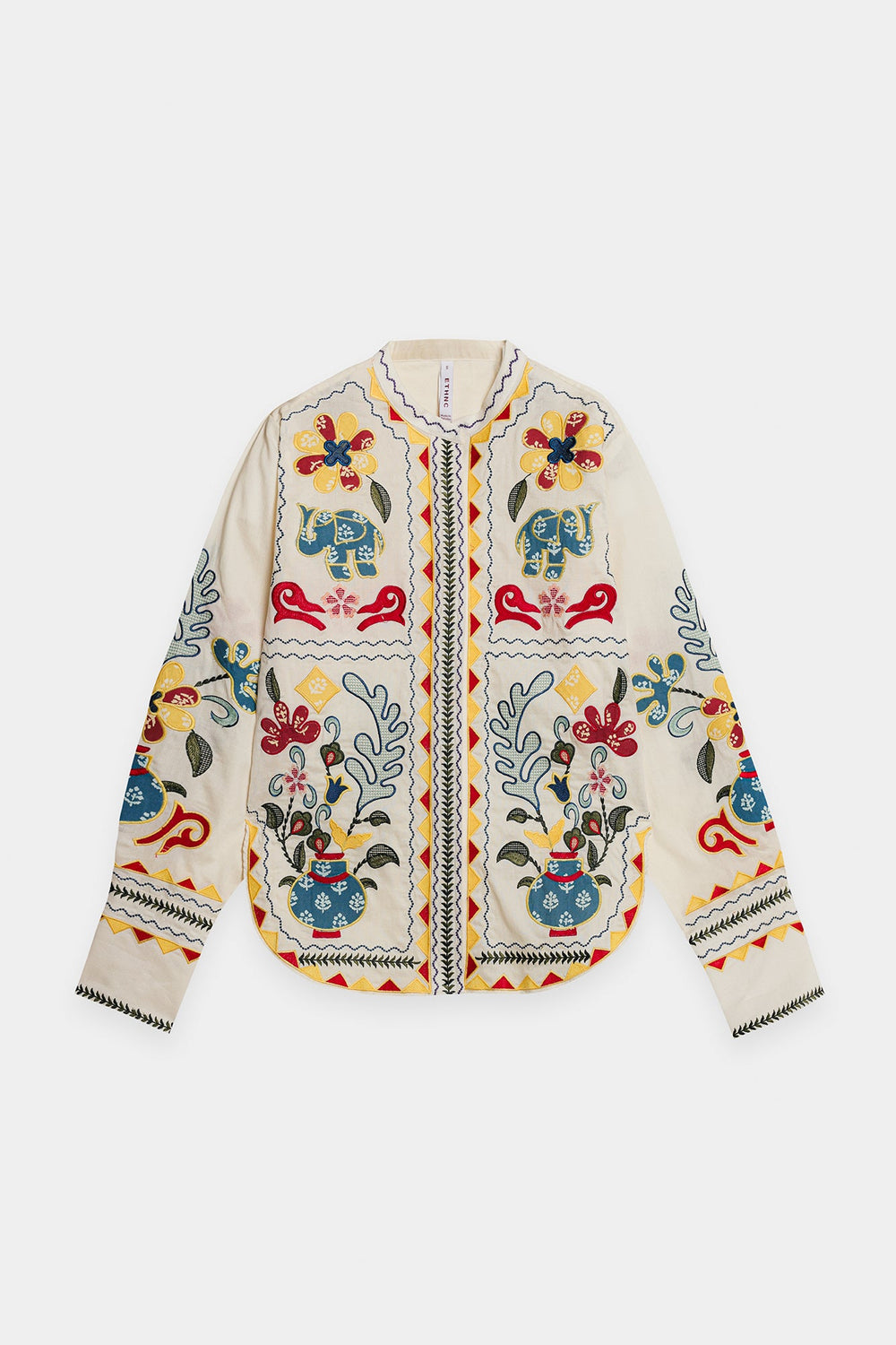Embrace a blend of art and style with this beautiful embroidered off white kurti. It features intricate and colorful floral motifs, creating a stunning and unique pattern on the front and sleeves. The straight fit ensures tapered silhouette, while the vibrant embroidery makes it a true statement piece. Perfect for a festive celebration or a special occasion where you want to showcase your artistic side.