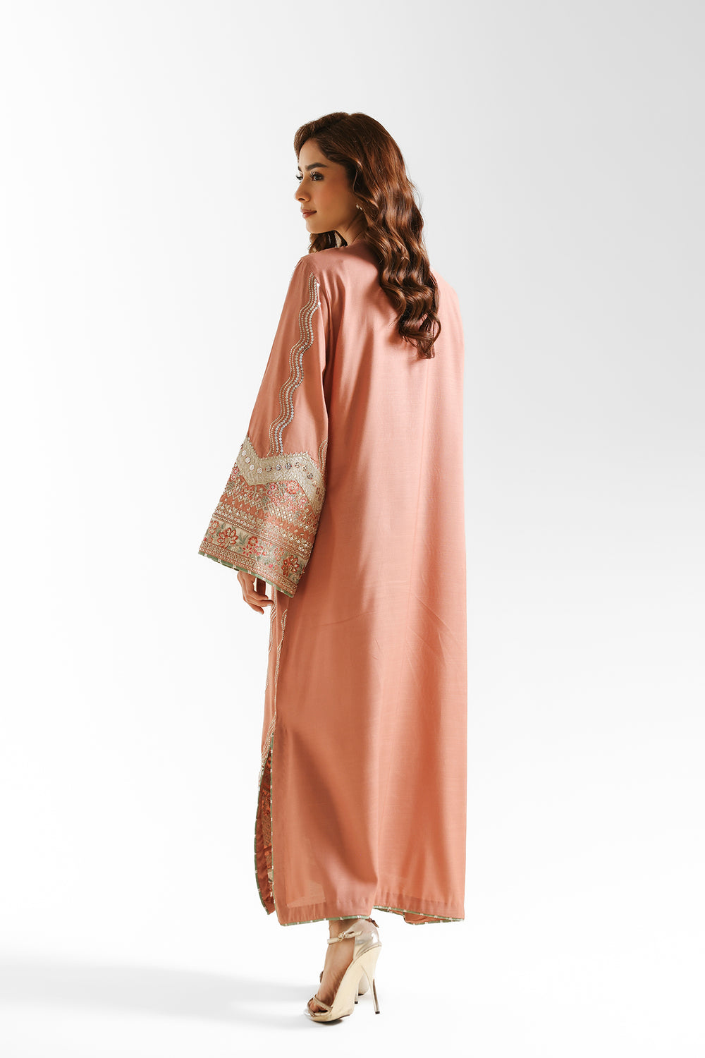 This exquisite coral ensemble adds a touch of elegance to any wardrobe, designed as a sophisticated style statement outfit. The long, A-line fit shirt features delicate floral embroidery and mesmerising sequin work, creating a beautiful and stylish look with scintillating embellishments around the neckline, sleeves, and hem. The round neck and A-line hem contribute to a graceful silhouette, perfect for any occasion when paired with contemporary trousers for a chic look.