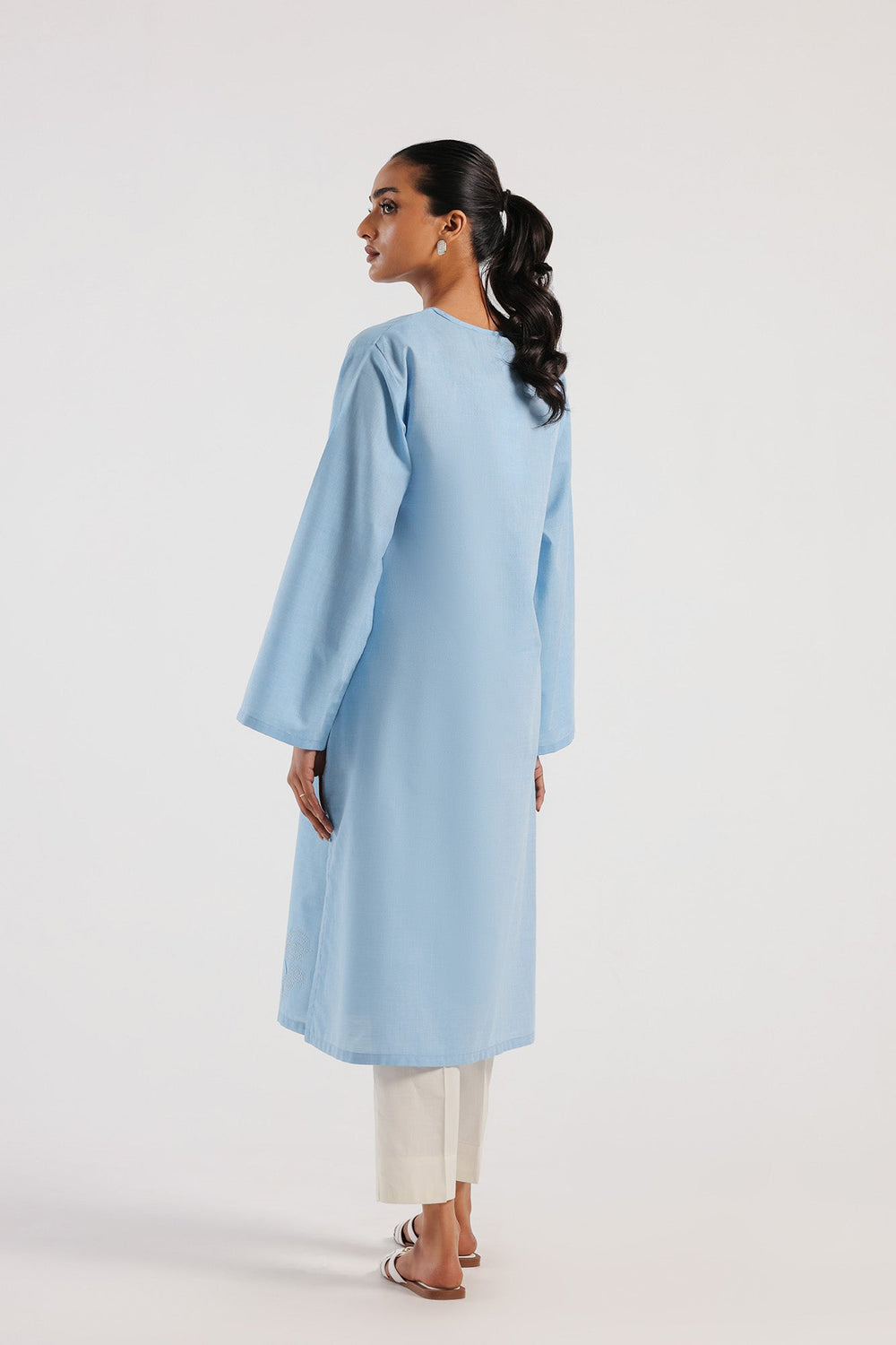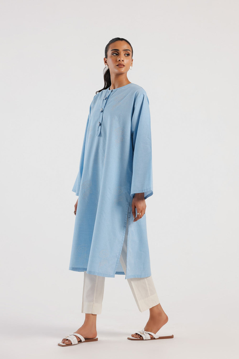 This elegant shirt offers a graceful and classy look with its turquoise color and enriched with abstract designs portrayed at front with dazzling beads. Its refreshing colors and delicate design with tassels and beads embellishments, creates a beautiful look to style at day gatherings this season.