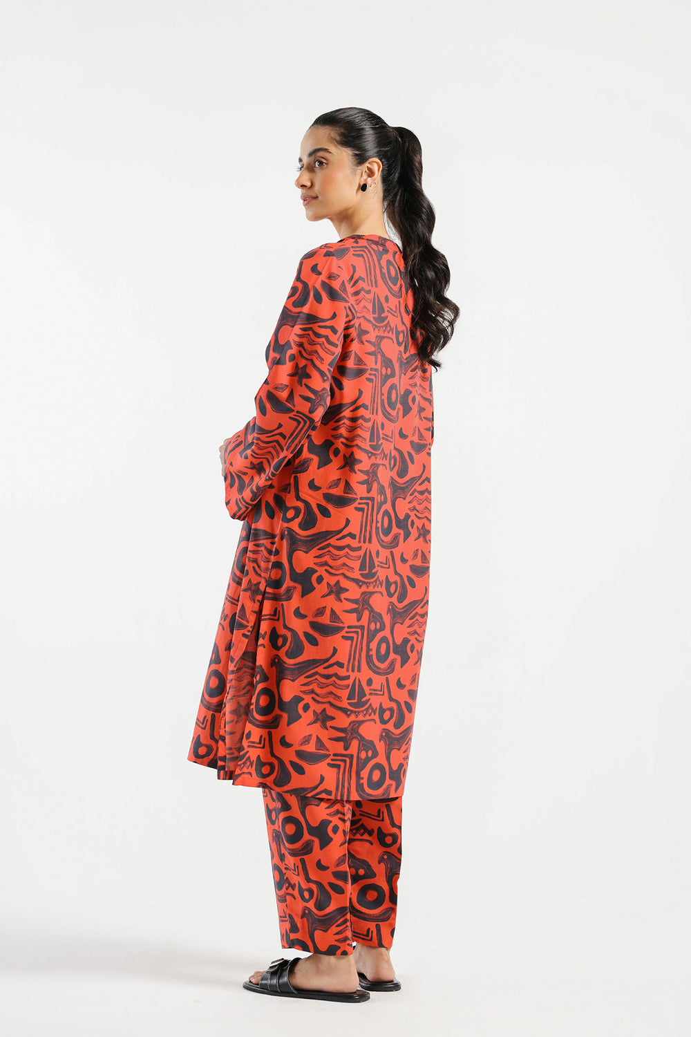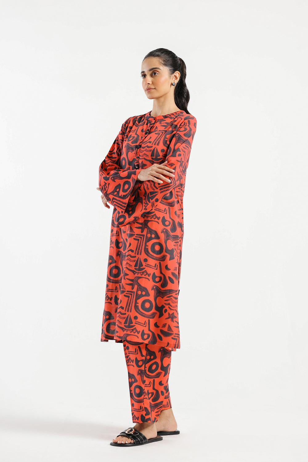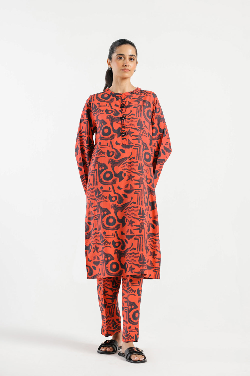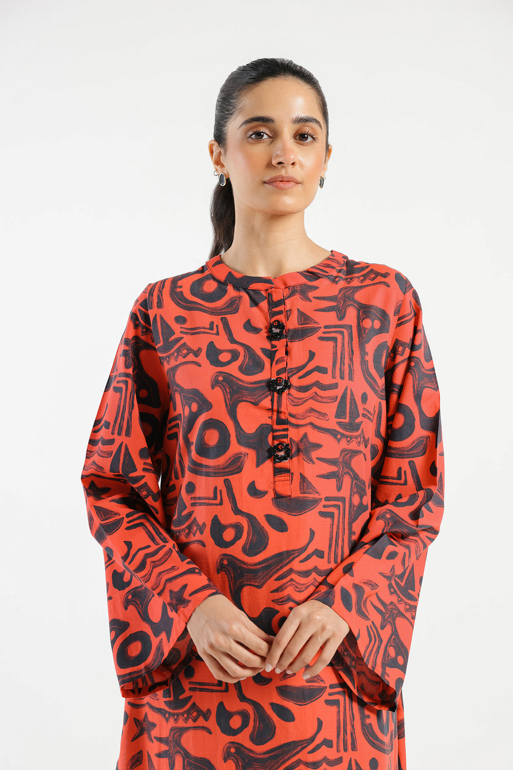 Be effortlessly stylish in this two-piece, artistic ensemble rendered in an deep red shade. It features an elegant silhouette shirt enriched with abstract pattern printed in vibrant shades. Perfectly tailored in a contemporary design adorned with trendy add ons at front and paired with a matching trouser, you'll look chic and bold in this must-have outfit.