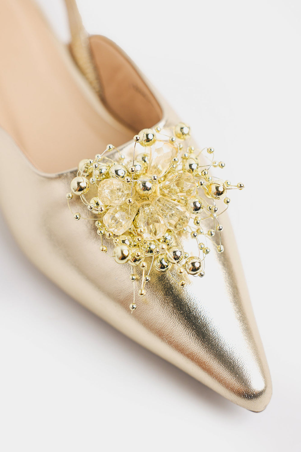 Make a glamorous, architectural statement with these striking gold slingback pumps. These pointed-toe slingbacks are crafted from a brilliant metallic finish that catches the light beautifully. The design is instantly modernized by a bold, motif on the vamp. This piece of footwear perfectly combines classic elegance with a contemporary, geometric edge, making it an ideal choice for enhancing formal or festive attire.