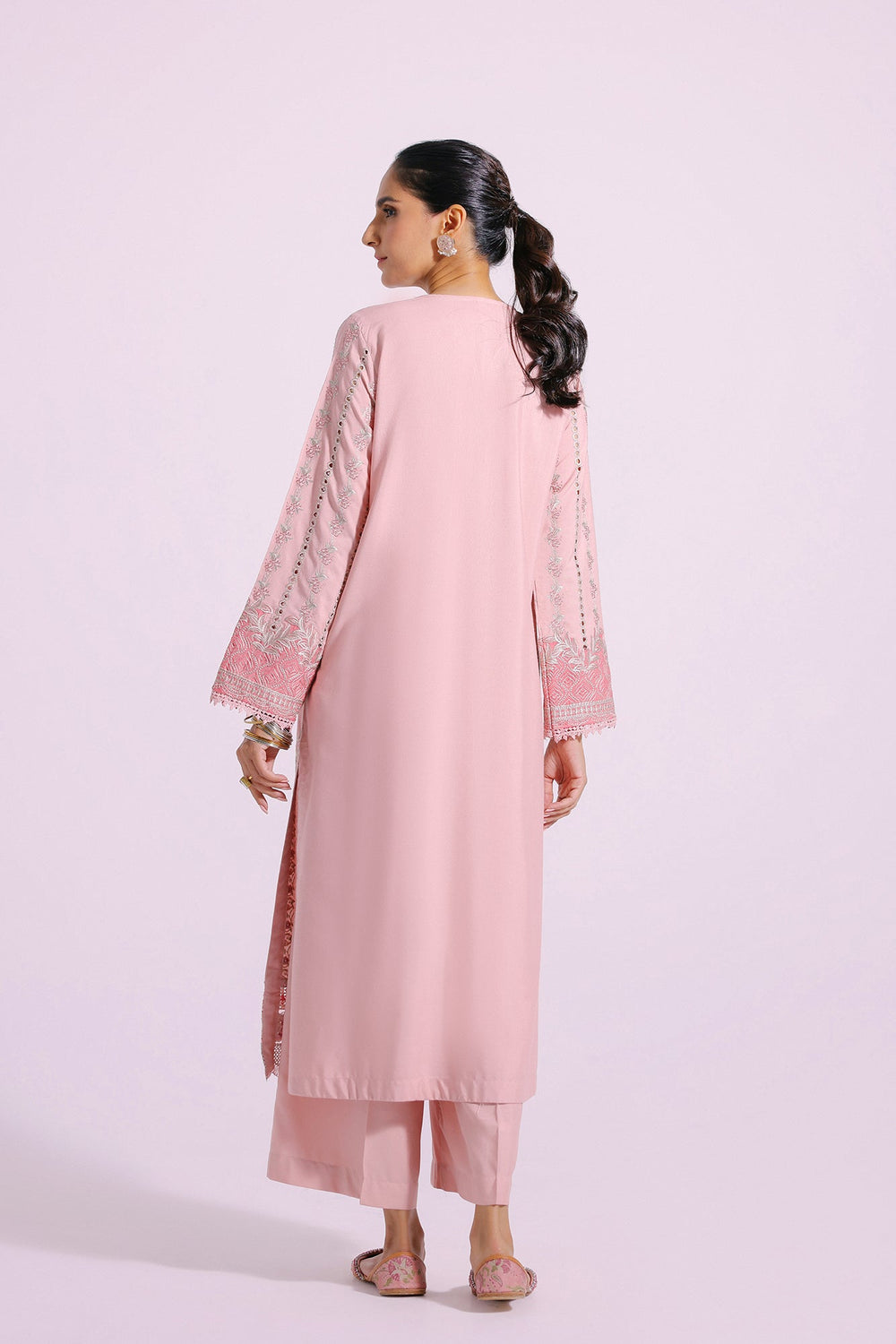 A gracefully elegant composition is portrayed on this classy ensemble rendered in baby shade. It features an aesthetically rich shirt enriched with intricate embroidery illustrating captivating floral designs with cut work details. Paired with a trendy trouser, this gorgeous outfit is a style statement for fun gatherings this season.