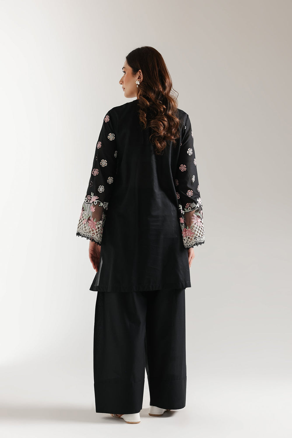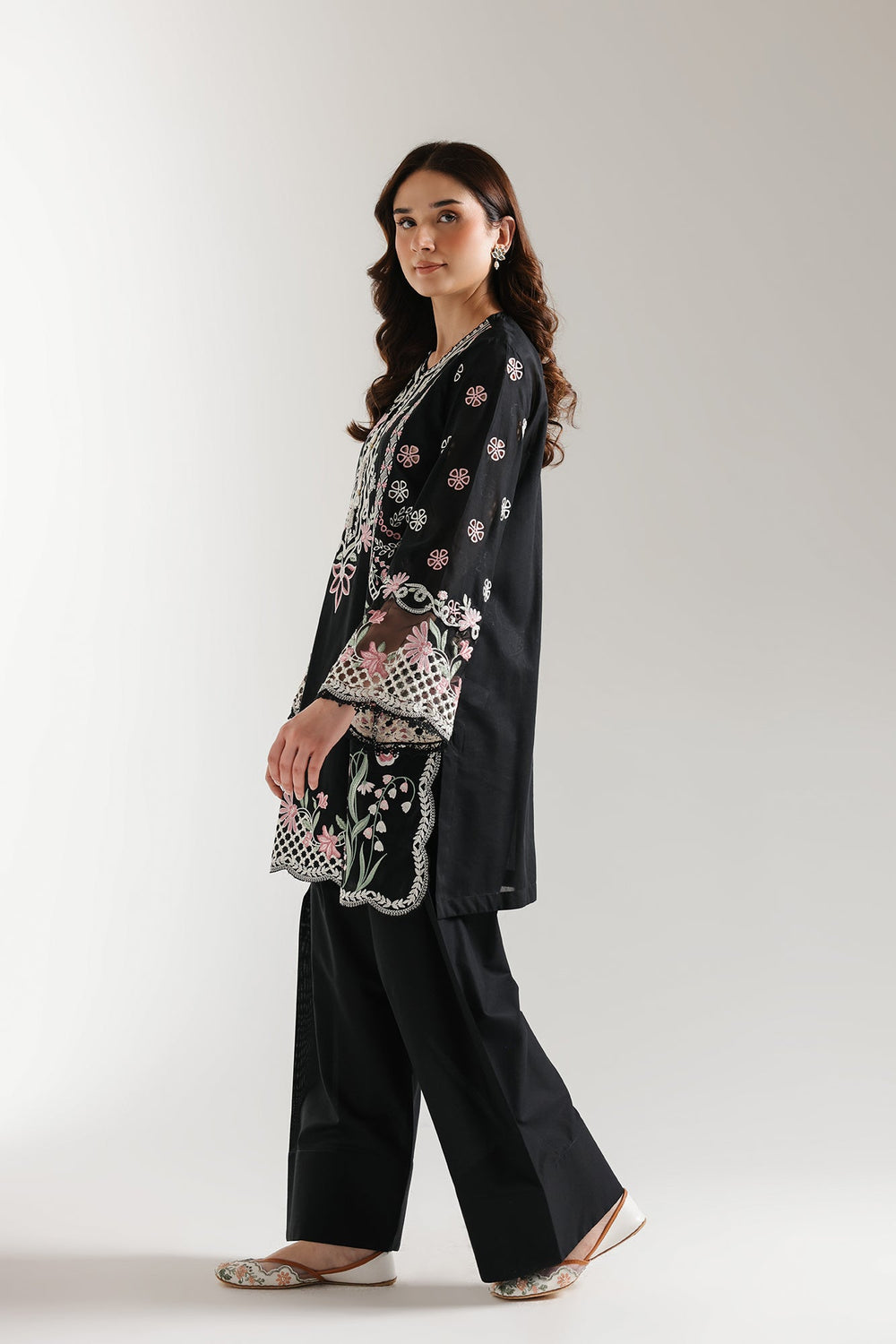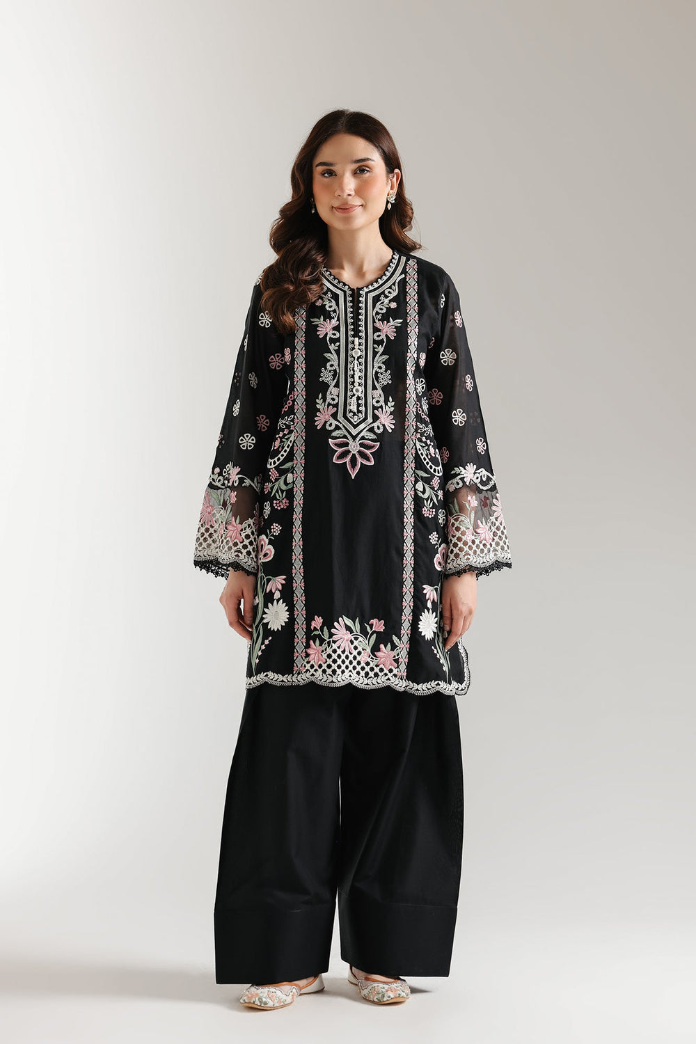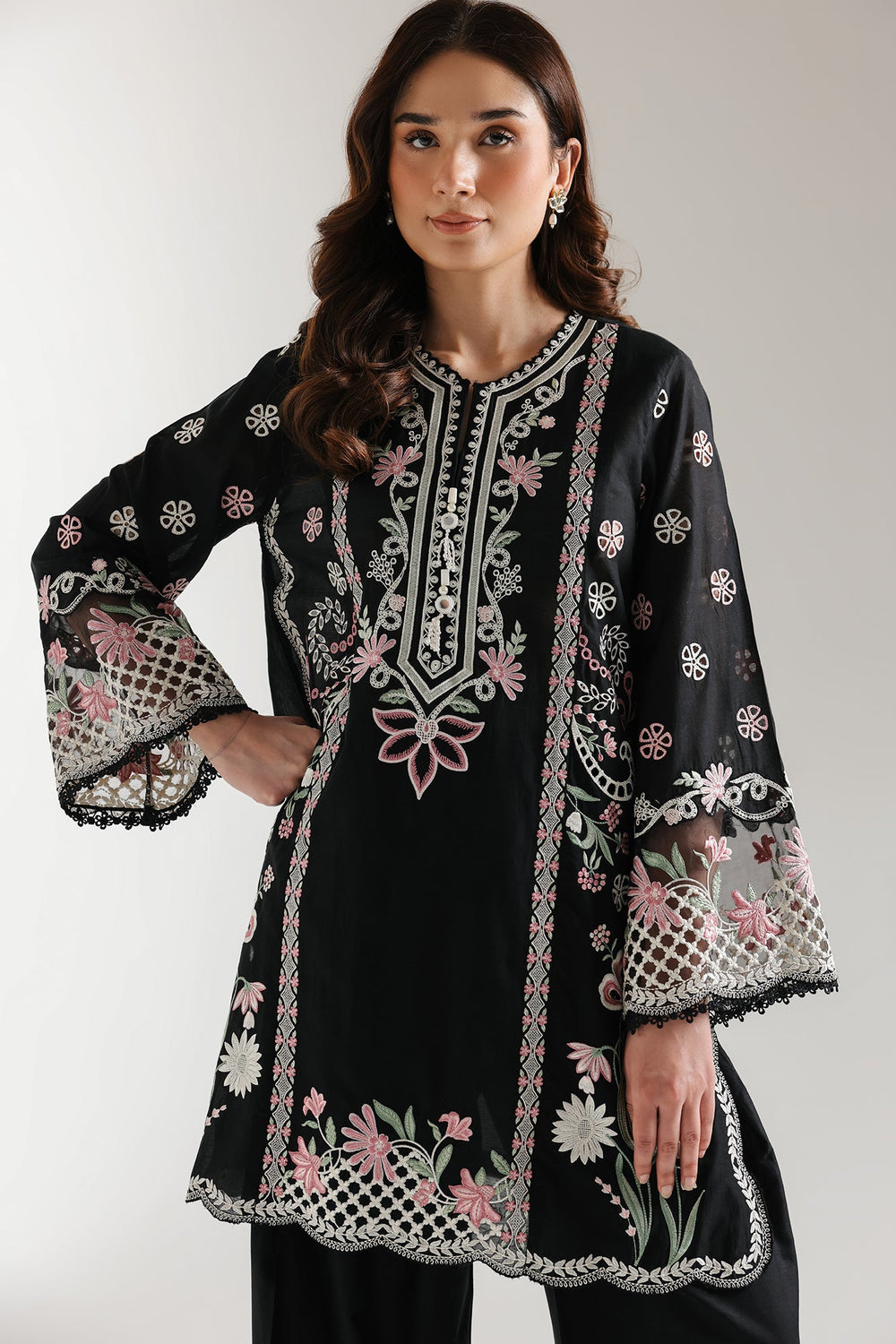 A classically chic composition is portrayed on this style statement outfit. It features a contemporary deep black shirt beautifully adorned with captivating floral designs embroidered with intricate technique in vibrant colors. Paired with a trendy solid shalwar, this gorgeous outfit is a great addition to your summer season wardrobe.