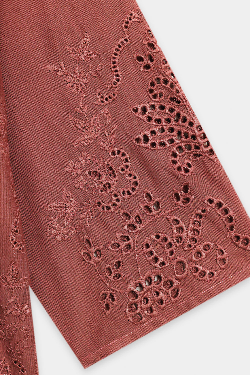 Elevate your wardrobe with the earthy charm of this embroidered suit. Crafted in a rich caramel hue, this stylish co-ord set features a relaxed-fit shirt with intricate cutwork embroidery on the sleeves and hem, adding a delicate touch. The matching wide-leg trousers also boast beautiful cutwork details along the hem, creating a cohesive and sophisticated ensemble. This suit is a perfect blend of comfort and captivating craftsmanship.