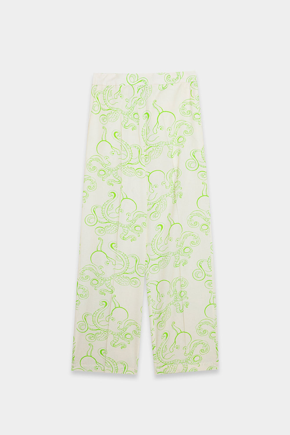 Unwind in style with this printed co-ord set, featuring a relaxed-fit, long-sleeved top with a classic collared neckline and a matching trouser, brought to life on a vibrant green canvas with dynamic motifs. This ensemble is perfect for adding an effortlessly chic aesthetic to your everyday routine.