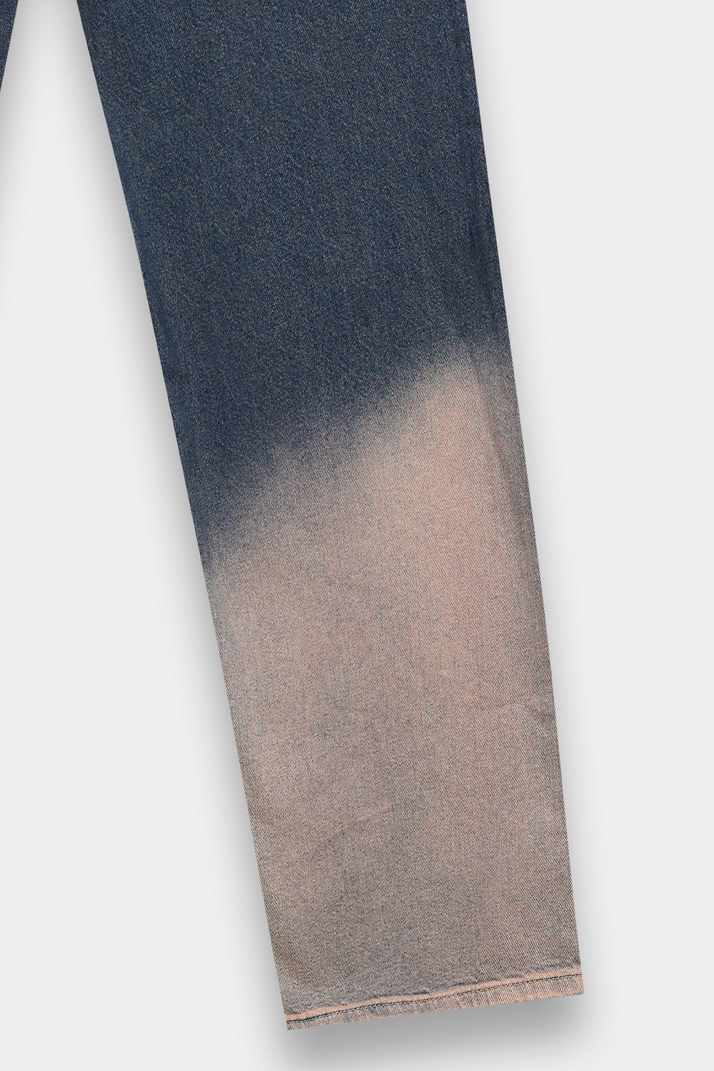 These jeans feature a low-rise waist with a relaxed, wide-leg baggy silhouette. Crafted from quality denim, they showcase a distinctive gradient wash that fades from deep blue at the top to a worn, dirty-brown tone at the hem, creating an ombre dip-dye effect. Subtle seaming details add character, giving the jeans a bold, vintage-inspired edge. Style them with a casual top and sneakers for an easy everyday look, or pair with a chic blouse to elevate the outfit.