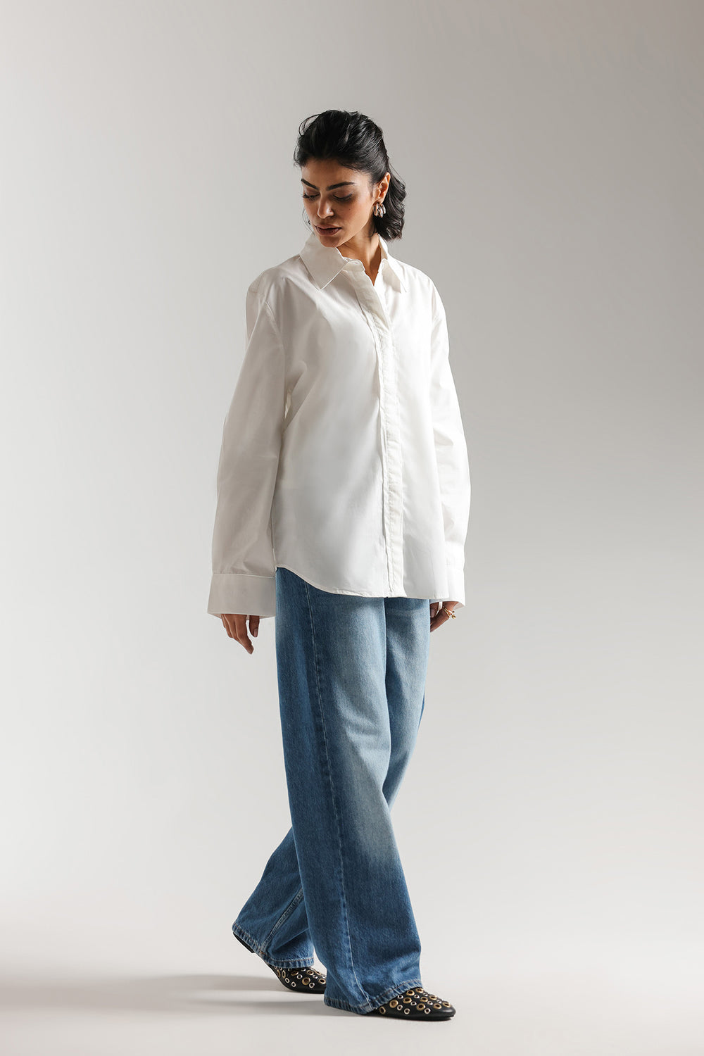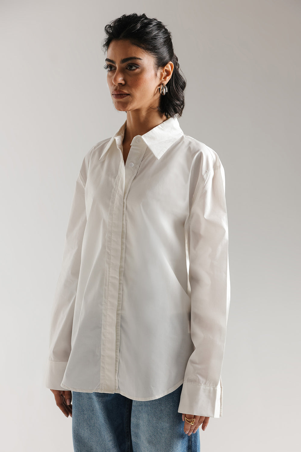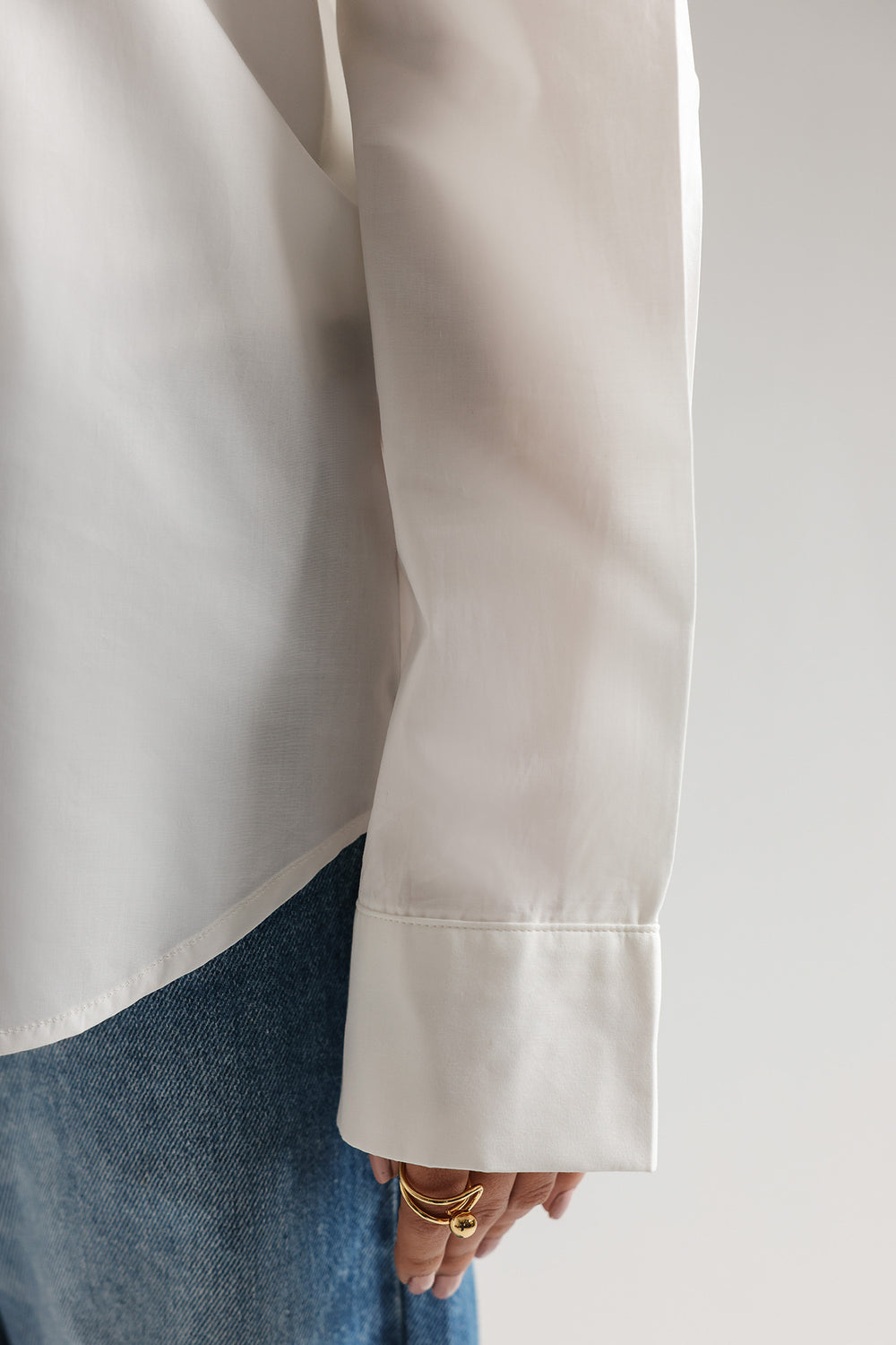 This classic button-down shirt is a masterclass in modern, minimalist design, offering a relaxed silhouette that balances structured tailoring with effortless ease. Crafted from high-quality, crisp cotton, the shirt features a sophisticated pointed collar and a clean front placket. The relaxed fit is further elevated by structured cuffs, creating a contemporary drape that transitions seamlessly from polished office wear to a chic, off-duty look. Whether paired with wide-leg denim for a casual aesthetic or tucked into a sleek skirt, this versatile piece serves as a timeless foundation for any high-end wardrobe.