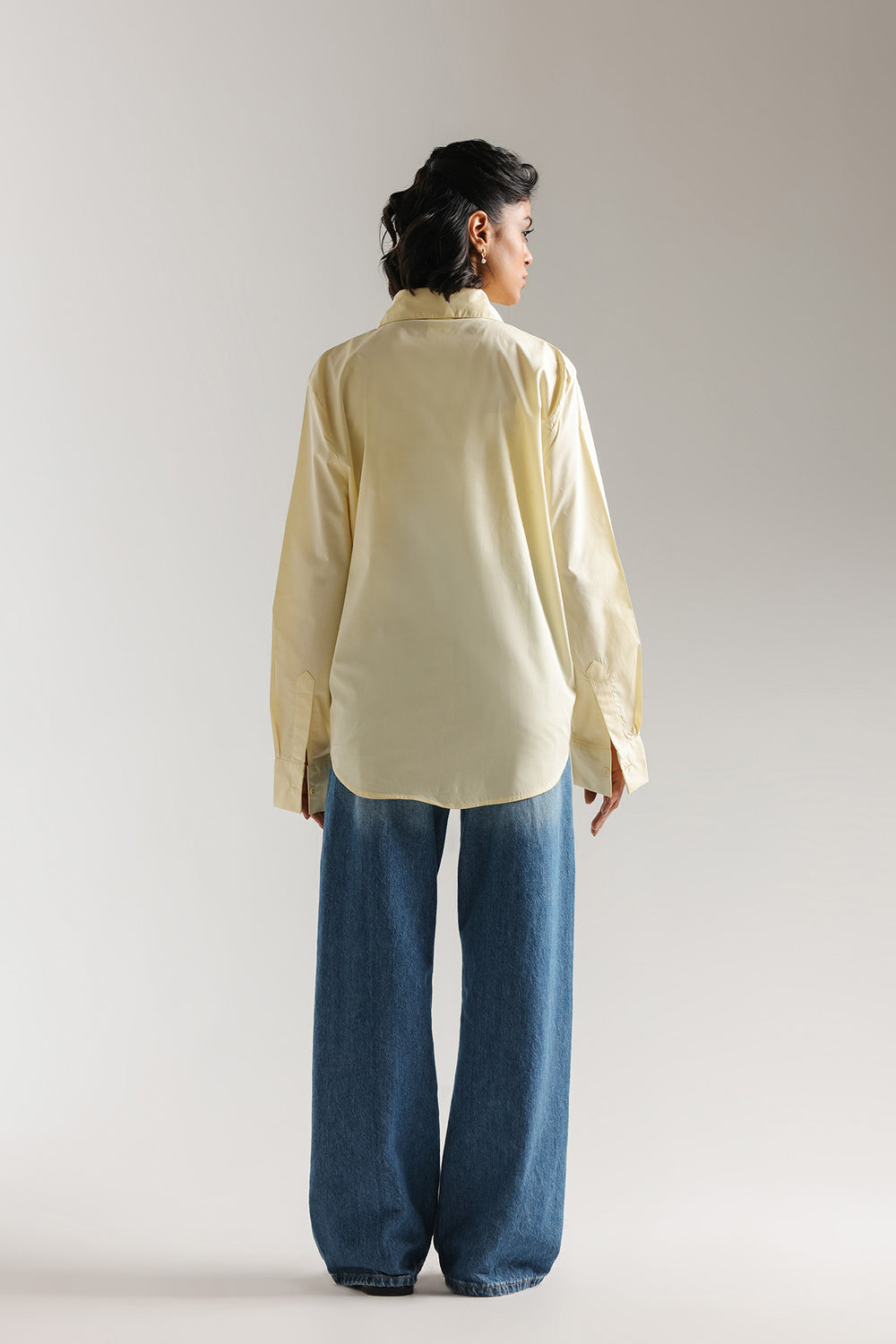This classic button-down shirt with minimalist design, offers a relaxed silhouette that balances structured tailoring with effortless ease. Crafted from high-quality, crisp cotton, the shirt features a sophisticated pointed collar and a clean front placket. The relaxed fit is further elevated by structured cuffs, creating a contemporary drape that transitions seamlessly from polished office wear to a chic, off-duty look. Whether paired with wide-leg denim for a casual aesthetic or tucked into a sleek skirt, this versatile piece serves as a timeless foundation for any high-end wardrobe.