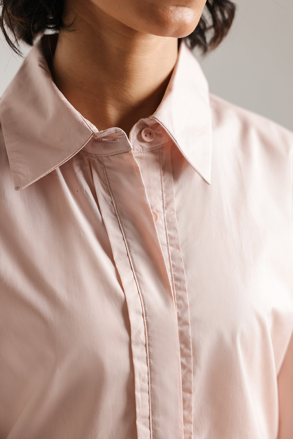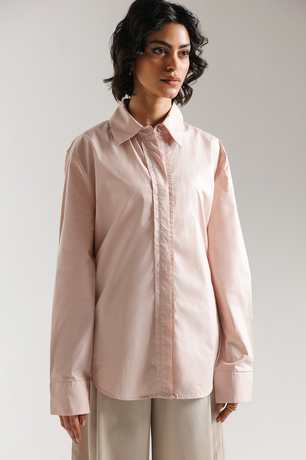This classic button-down shirt with minimalist design, offers a relaxed silhouette that balances structured tailoring with effortless ease. Crafted from high-quality, crisp cotton, the shirt features a sophisticated pointed collar and a clean front placket. The relaxed fit is further elevated by structured cuffs, creating a contemporary drape that transitions seamlessly from polished office wear to a chic, off-duty look. Whether paired with wide-leg denim for a casual aesthetic or tucked into a sleek skirt, this versatile piece serves as a timeless foundation for any high-end wardrobe.