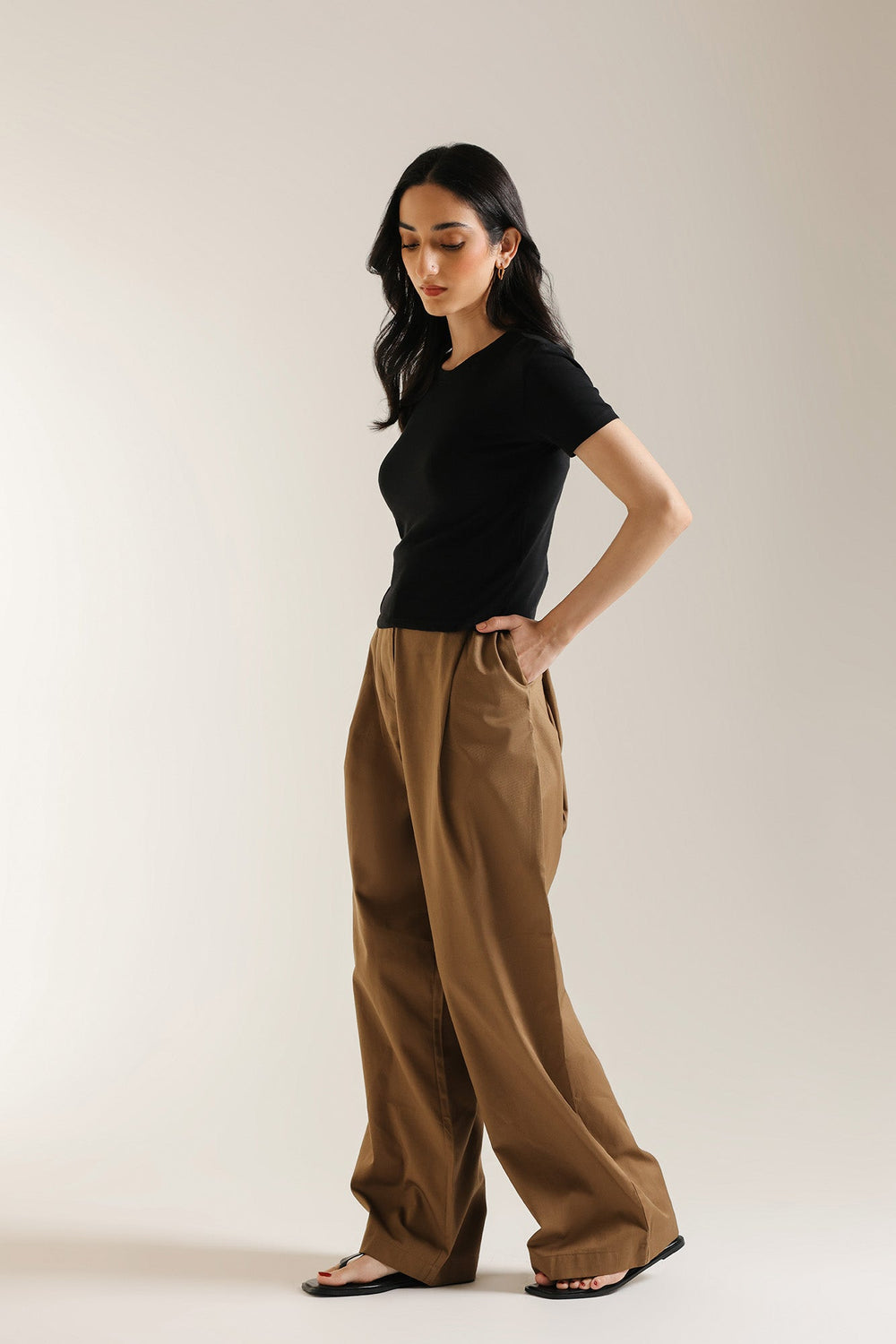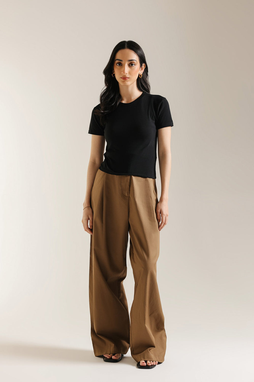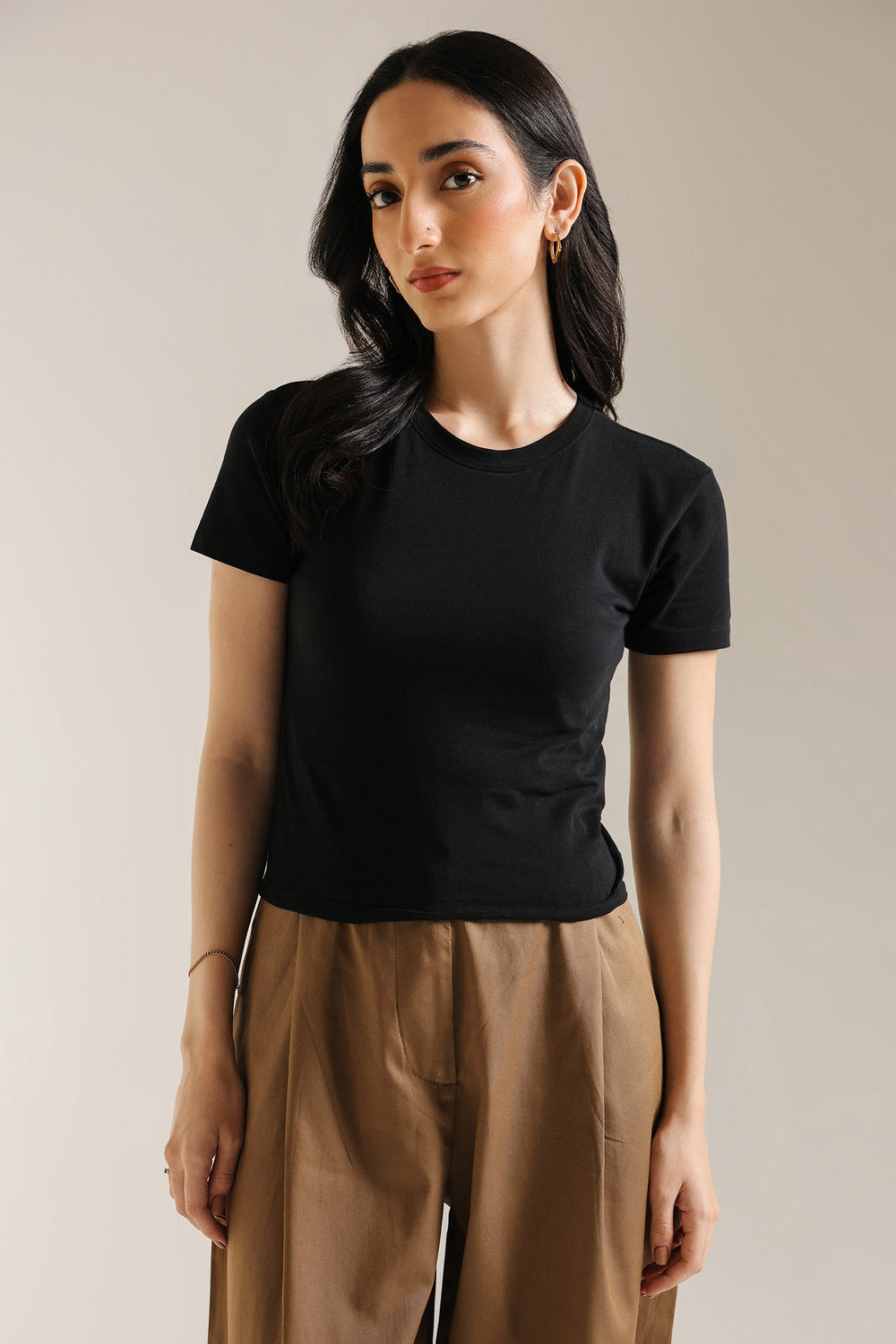 Discover the perfect blend of style and comfort with this versatile black t-shirt. With its classic short sleeves and crew neckline, this tee is ideal for effortless everyday wear, easily paired with trousers, jeans, or skirts for a chic and comfortable look.